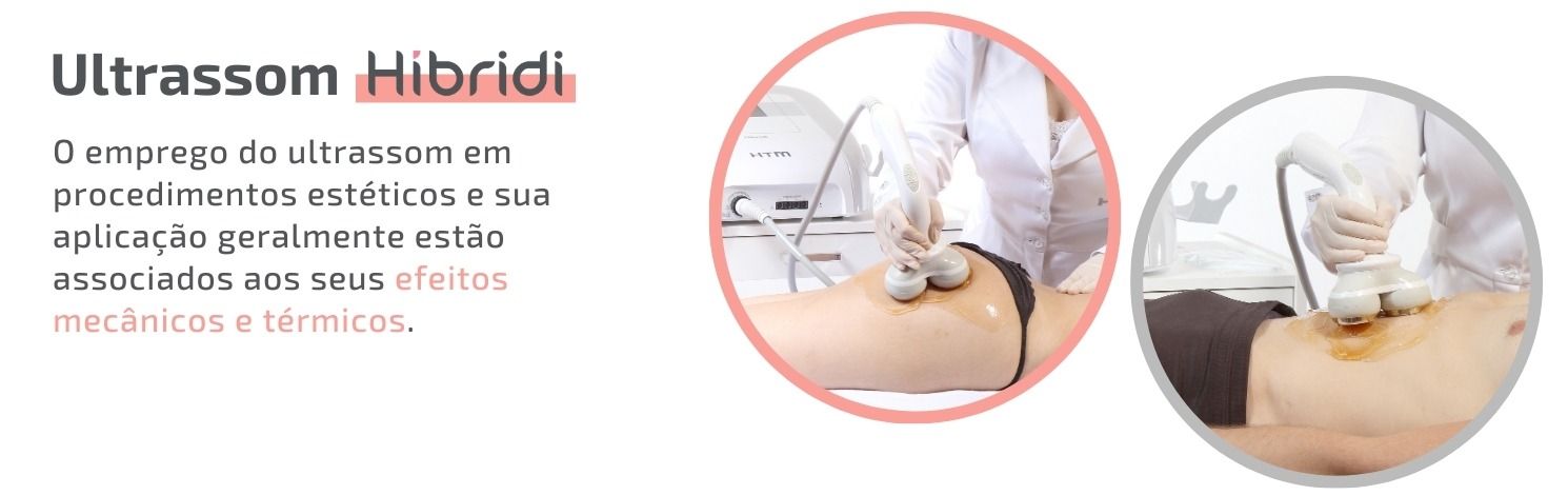 O Ultrassom Híbrid da HTM conta com uma plataforma compacta híbrida de terapias simultâneas com Ultrassom e Correntes para o uso facial e corporal.